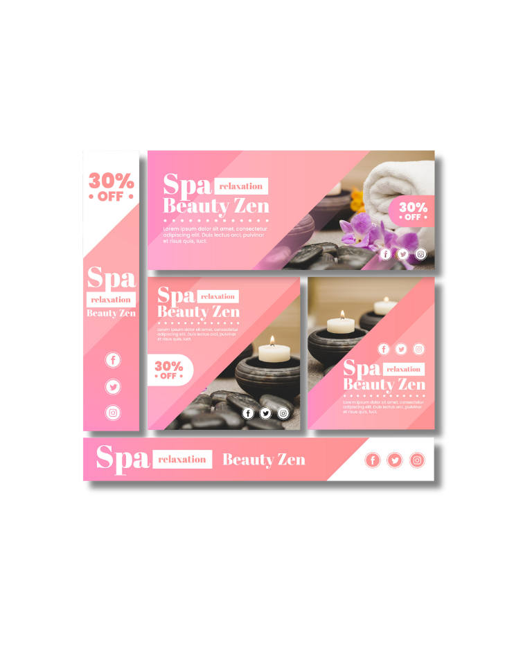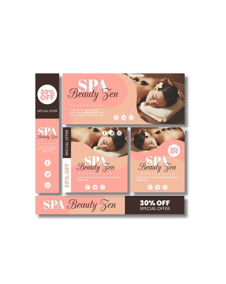 A cohesive banner design set for spa and wellness brands that enhances relaxation and professionalism across platforms.